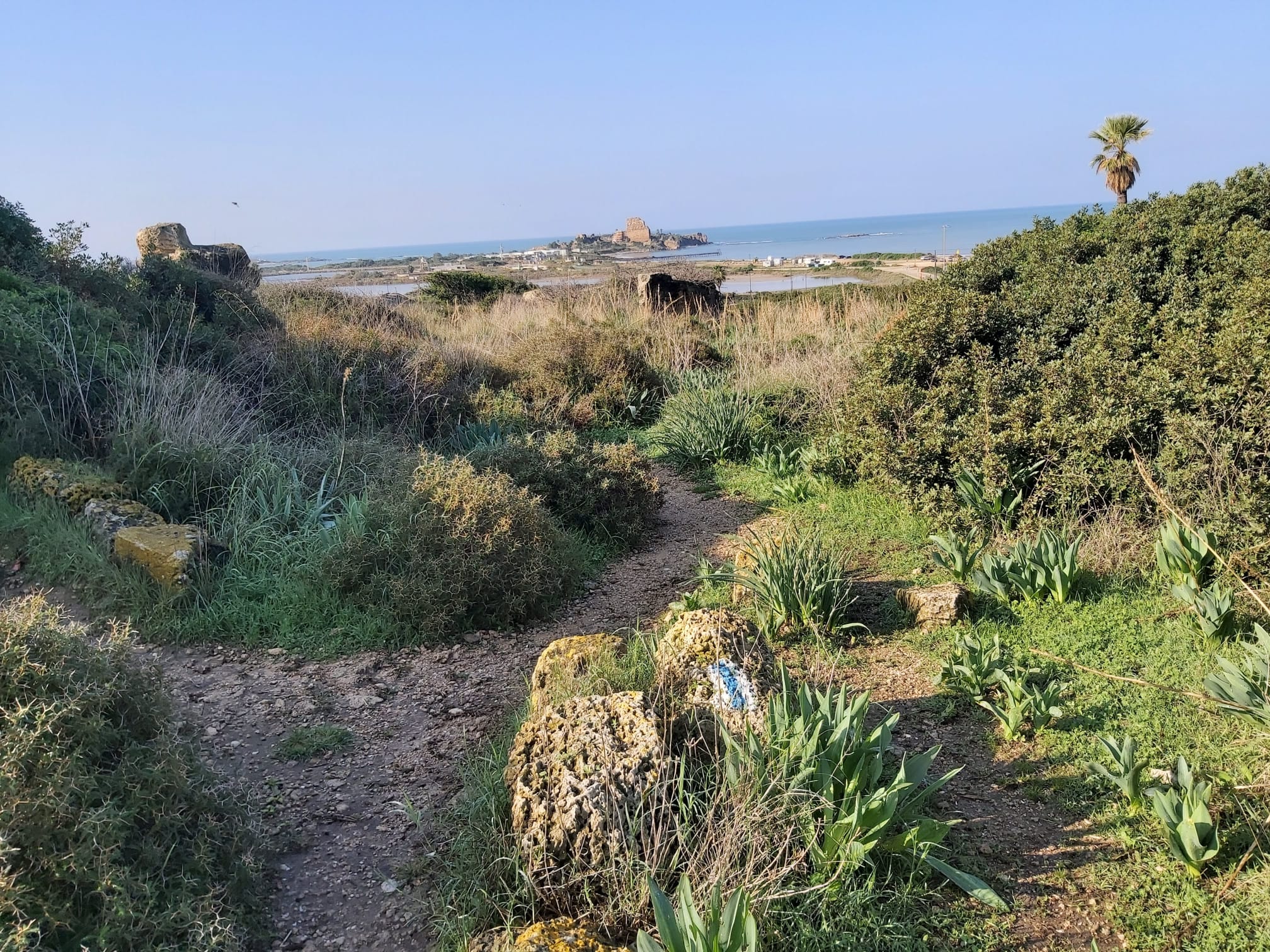המסלול עובר על רכס הכורכר בין שרידים ארכיאולוגים וסיפור על הצלבנים שניצלו את "המעבר הצר" (דיסטריקטום) להגנה על המבצר של "עולי הרגל".